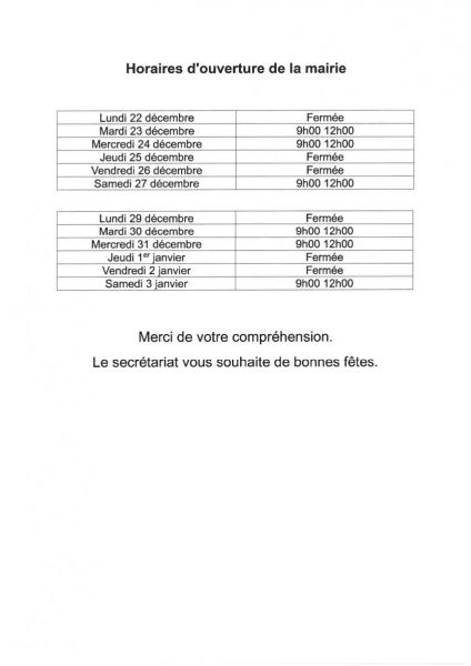 Fermée le lundi Mercredi-Jeudi-Samedi : 9h00 - 12h00 Mardi-Vendredi : 9h00 - 12h00 et de 15h00 - 18h30 |